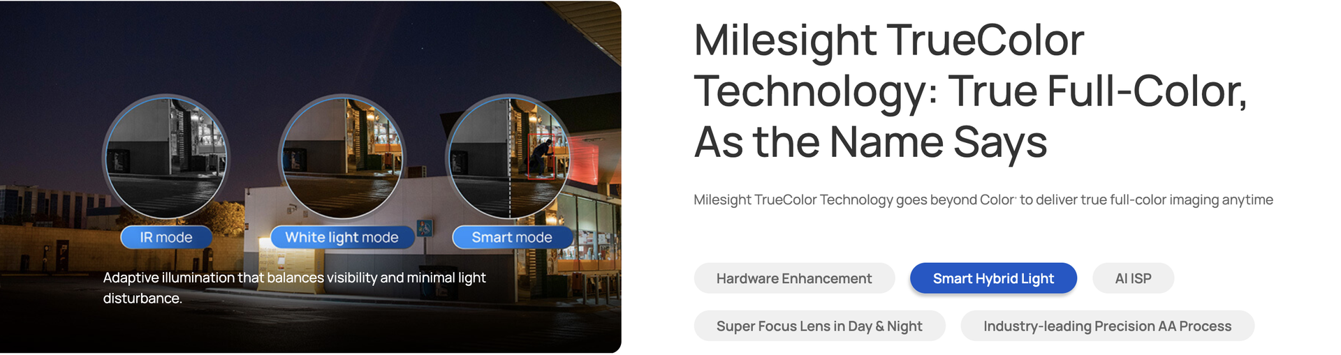 | Illuminator Type | 3 x Smart Hybrid Lights (Mixed IR and White Warm Lights) |
