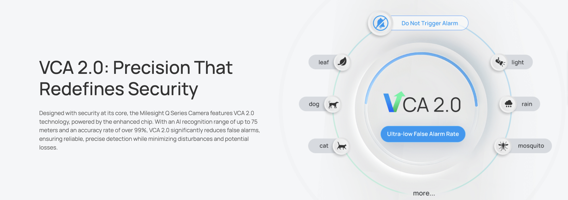 | Video Analysis | VCA 2.0: Intrusion Detection, Region Entrance, Region Exiting, Advanced Motion Detection, Line Crossing, Loitering, Object Left, Object Removed |