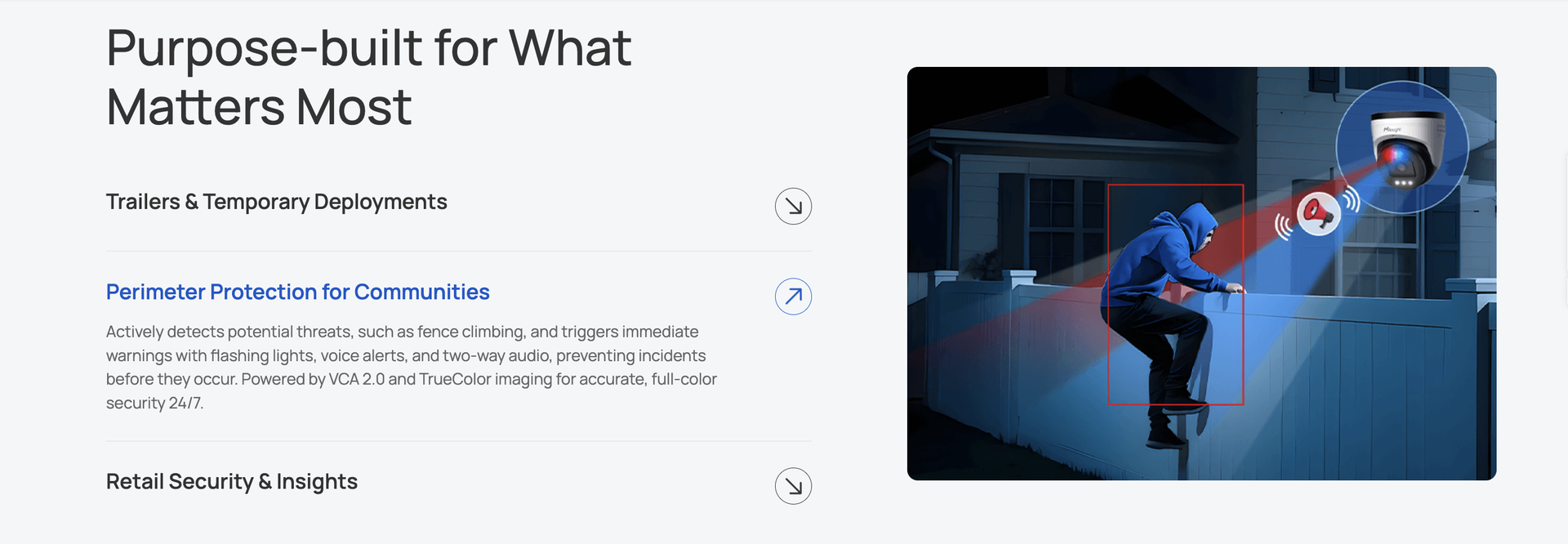 | Illumination Distance | Up to 40m (IR Light), Up to 30m (White Warm Light) |