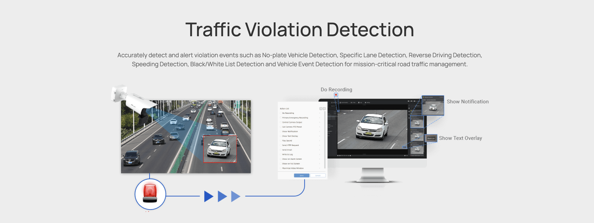 | Event Action | FTP Upload, SMTP Upload, SD Card Record, External Output, SIP Phone, HTTP Notification, etc |