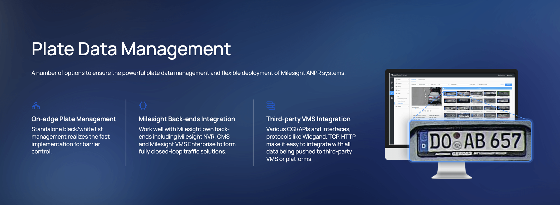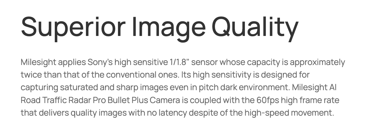 | Attributes Identification | Plate Color, Vehicle Type, Vehicle Color, Vehicle Brand, No-plate Vehicle Capture, Vehicle Direction Detection, Speed Detection * Vehicle Color and Plate Color identification are not supported in low-light or night conditions. |